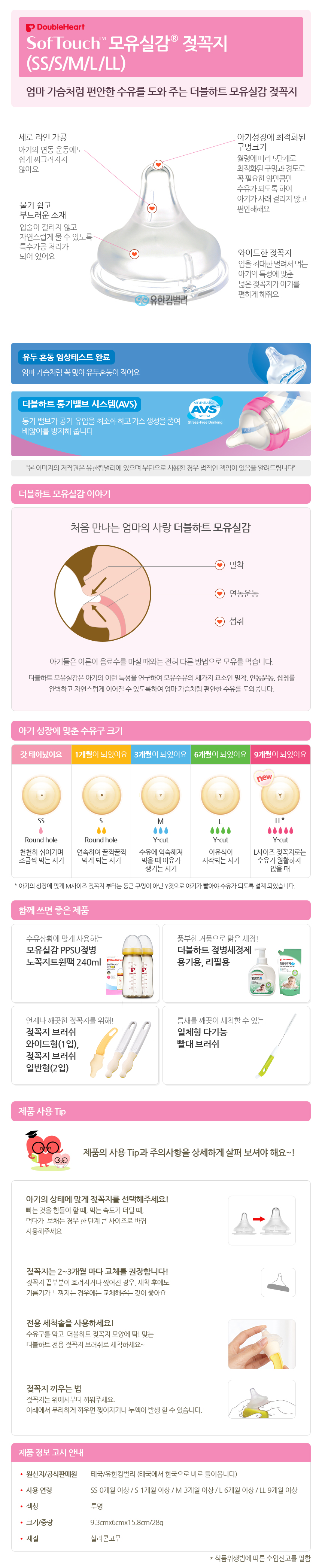 [더블하트]SofTouch 모유실감 젖꼭지SS(1개입)/S/M/L/LL(2개입)